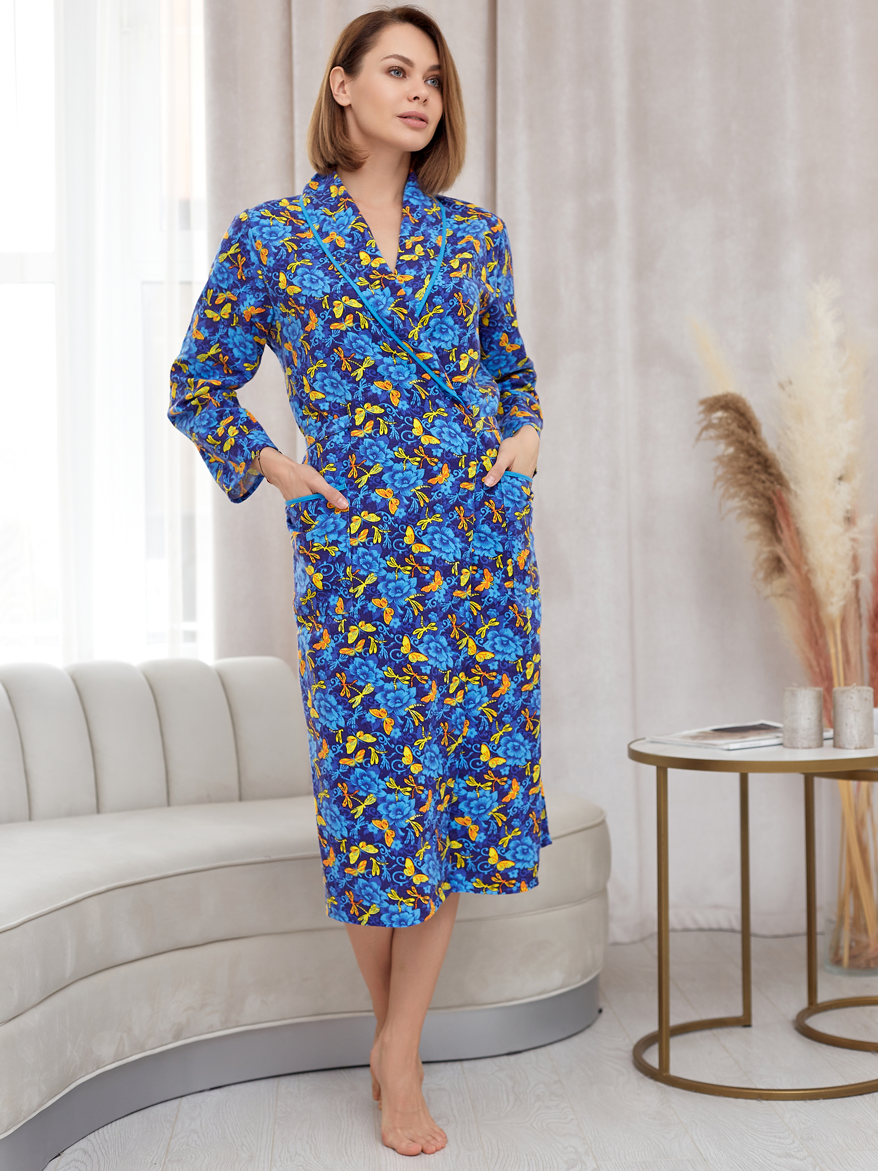 Халат байковый женский с длинным рукавом и накладными карманами на запах.