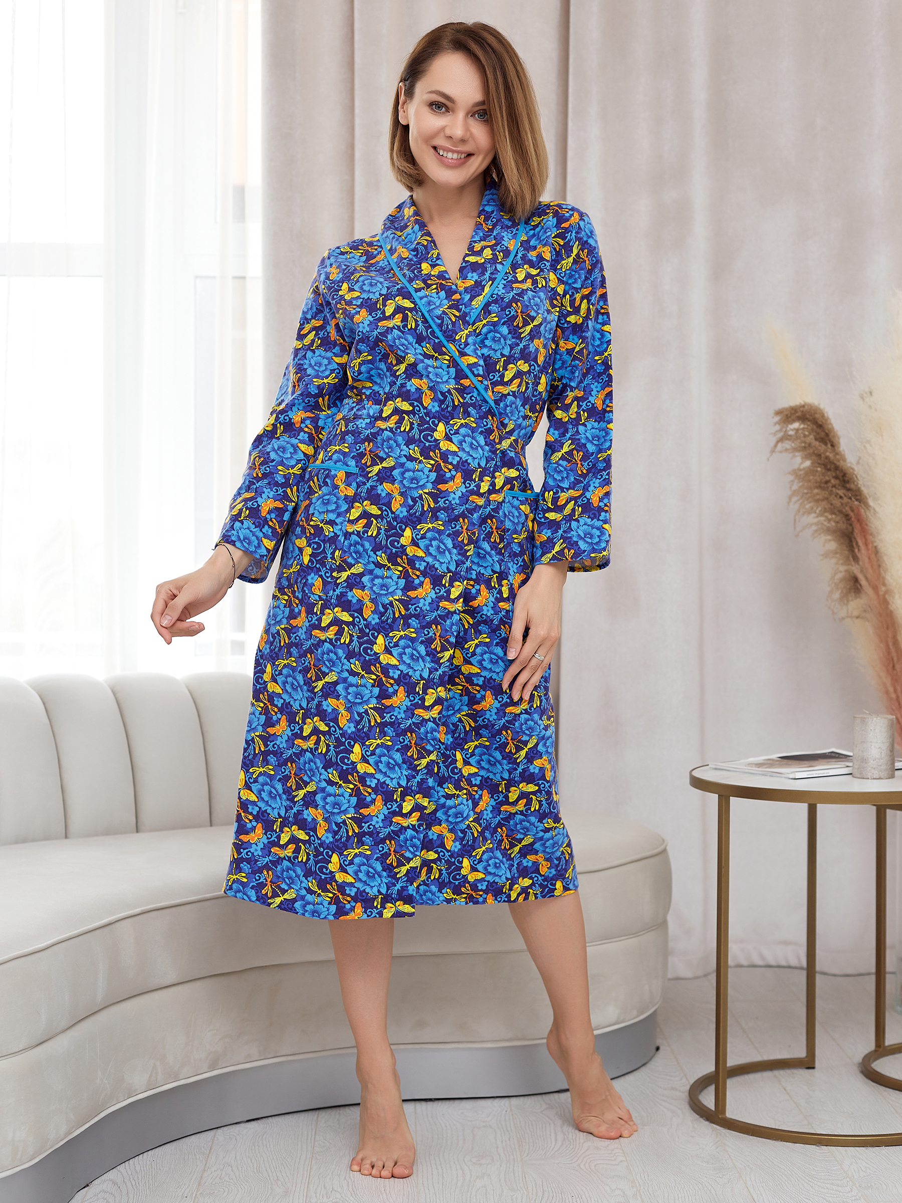 Женский домашний халат хлопок запашной теплый выполнен из мягкой дышащей ткани мягкой фланели.